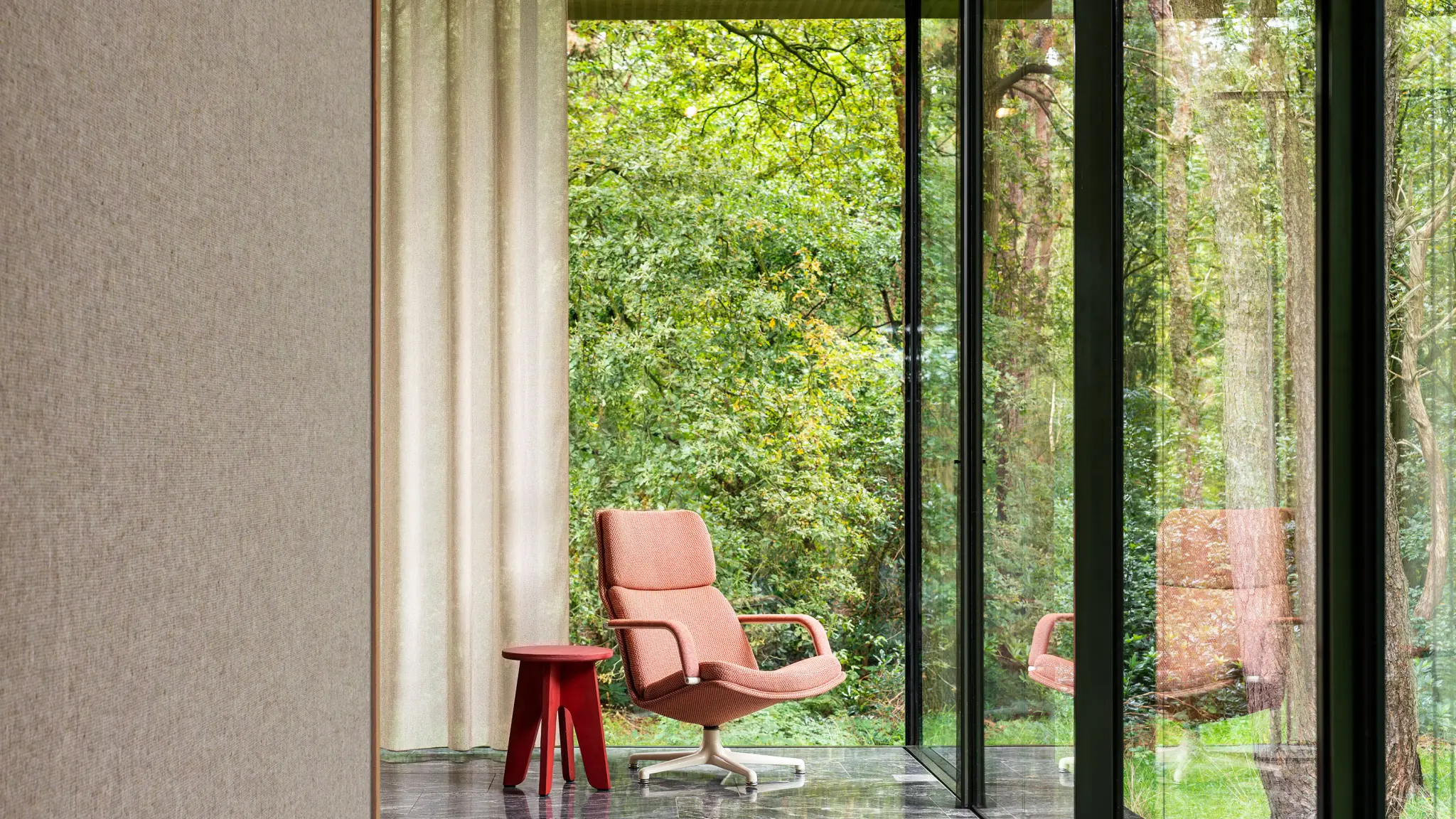 Vescom crafts premium wallcovering, upholstery, and curtain fabrics that enhance well-being in interiors. We provide architects, designers, commercial partners, and installers with sustainable, high-quality material solutions that meet diverse needs — from comfort and hygiene to safety, acoustics, and aesthetics.