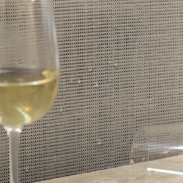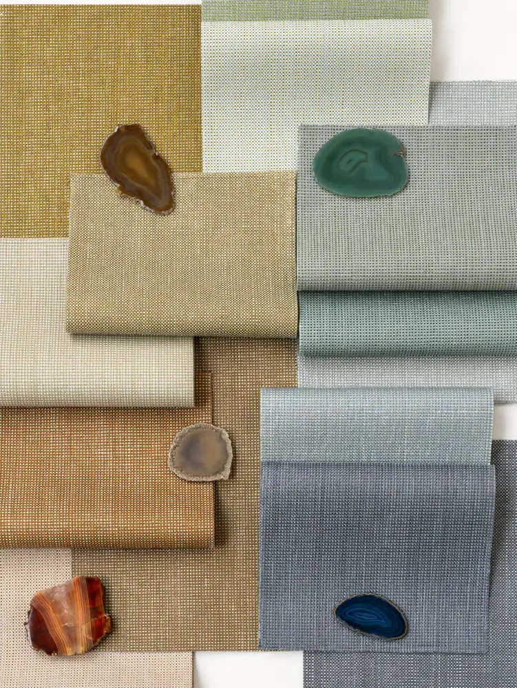 Textile wallcovering that weaves a sophisticated, crafted character with high performance and easy maintenance.