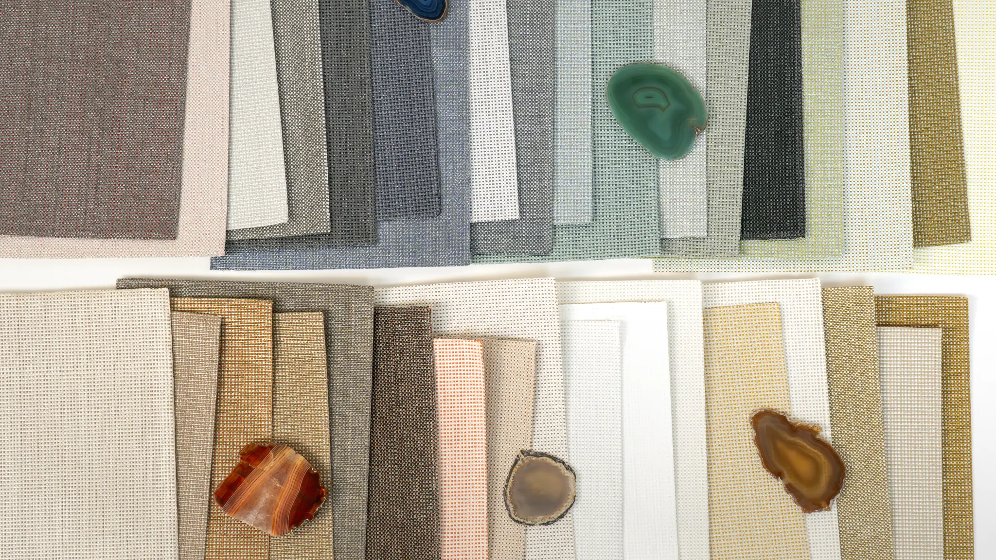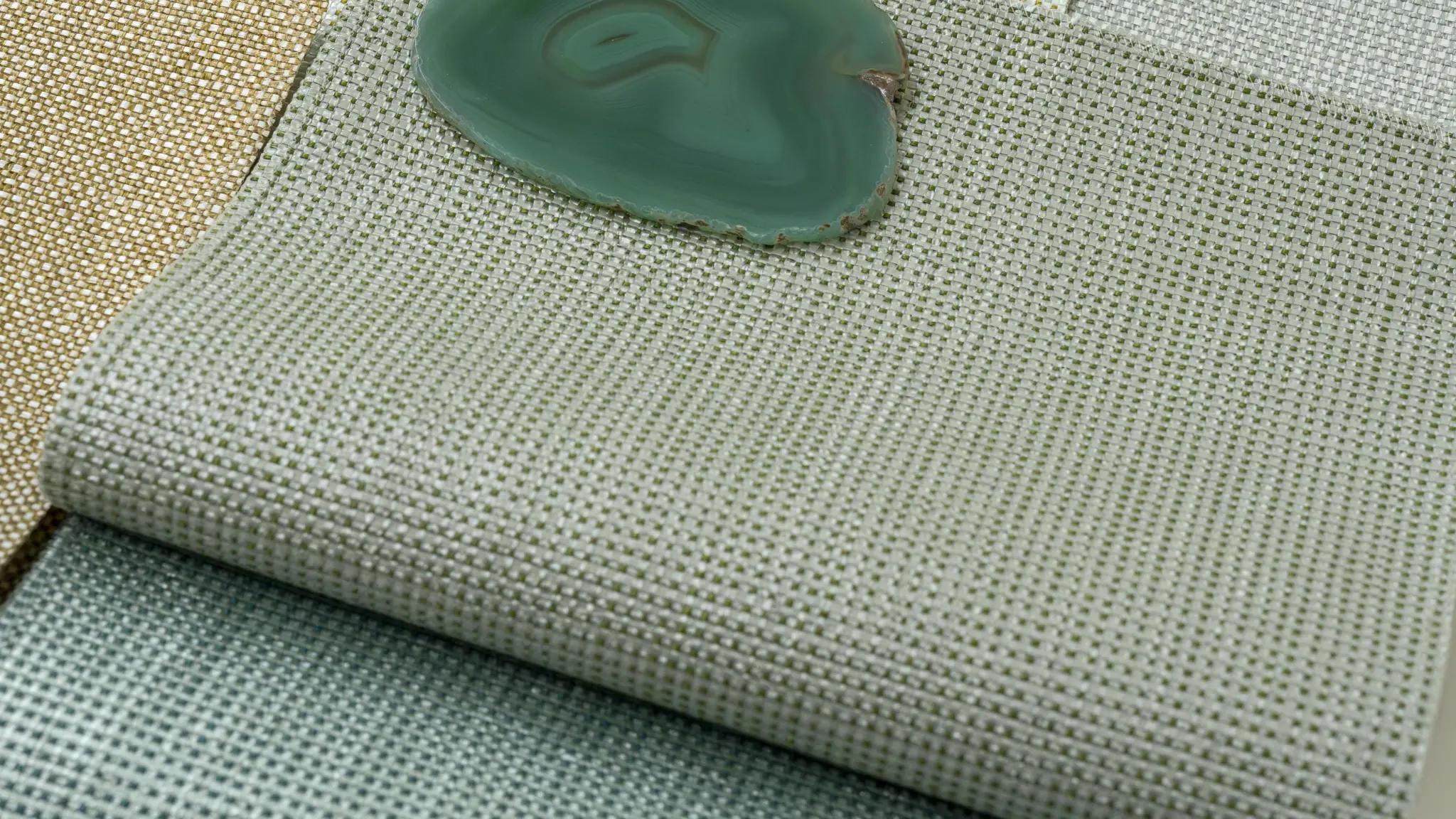 Gemstone is multifaceted like its namesake, with a small grid structure that adds subtle texture to spaces. The wallcovering combines polyethylene tape yarn with thin recycled polyester yarn, which softens the lustre, introduces dynamic colour and contributes to a product with 20% recycled content. From pink opal and tiger eye to smoky quartz and sapphire, its wide range of 35 colourways draw from gemstones and coloured glass – and the way they refract and reflect light.