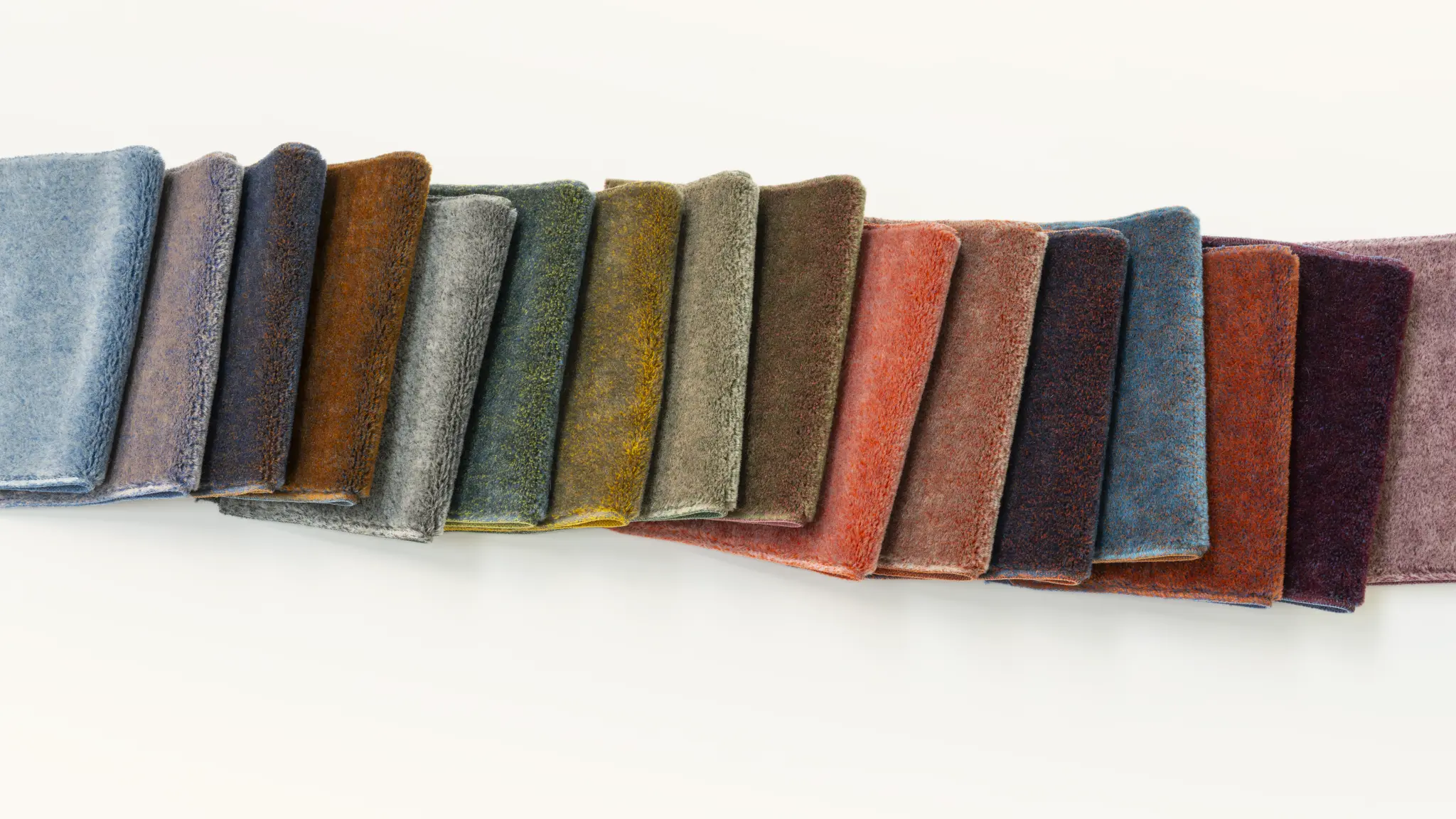 As its name suggests, Onyx evokes the allure of gemstones – both in its radiant palette and its intrinsic richness. Its 16 distinctive two-tone colourways are created during the dyeing process through the interplay of the materials in its pile composition: 70% mohair and 30% cotton.