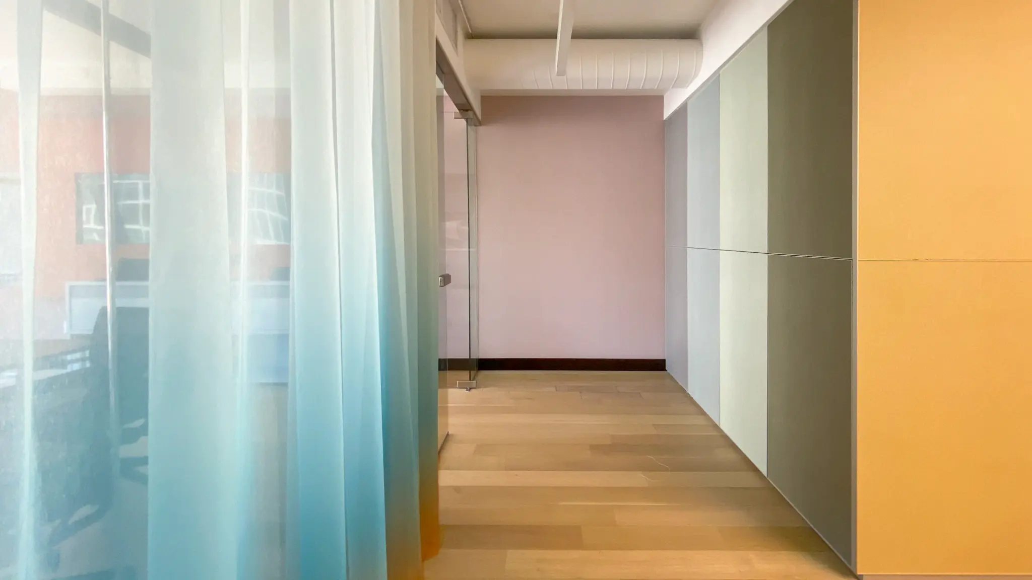 Synergy is also evident across Vescom’s product ranges, which are literally put to work in the working brand office. Instead of being shown as small product samples on standard displays, wallcoverings come to life on the walls, curtains provide the optimal light and acoustic conditions for working, and upholstery adds warmth and softness. These high-performance materials meet the demands and set the inviting and inspiring mood of the multifunctional workplace. In everywhere from dining spots to lounge and rest areas to dedicated desk zones, they add tactility and comfort, qualities associated with the homeification of the office.