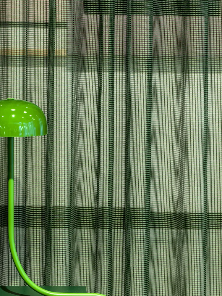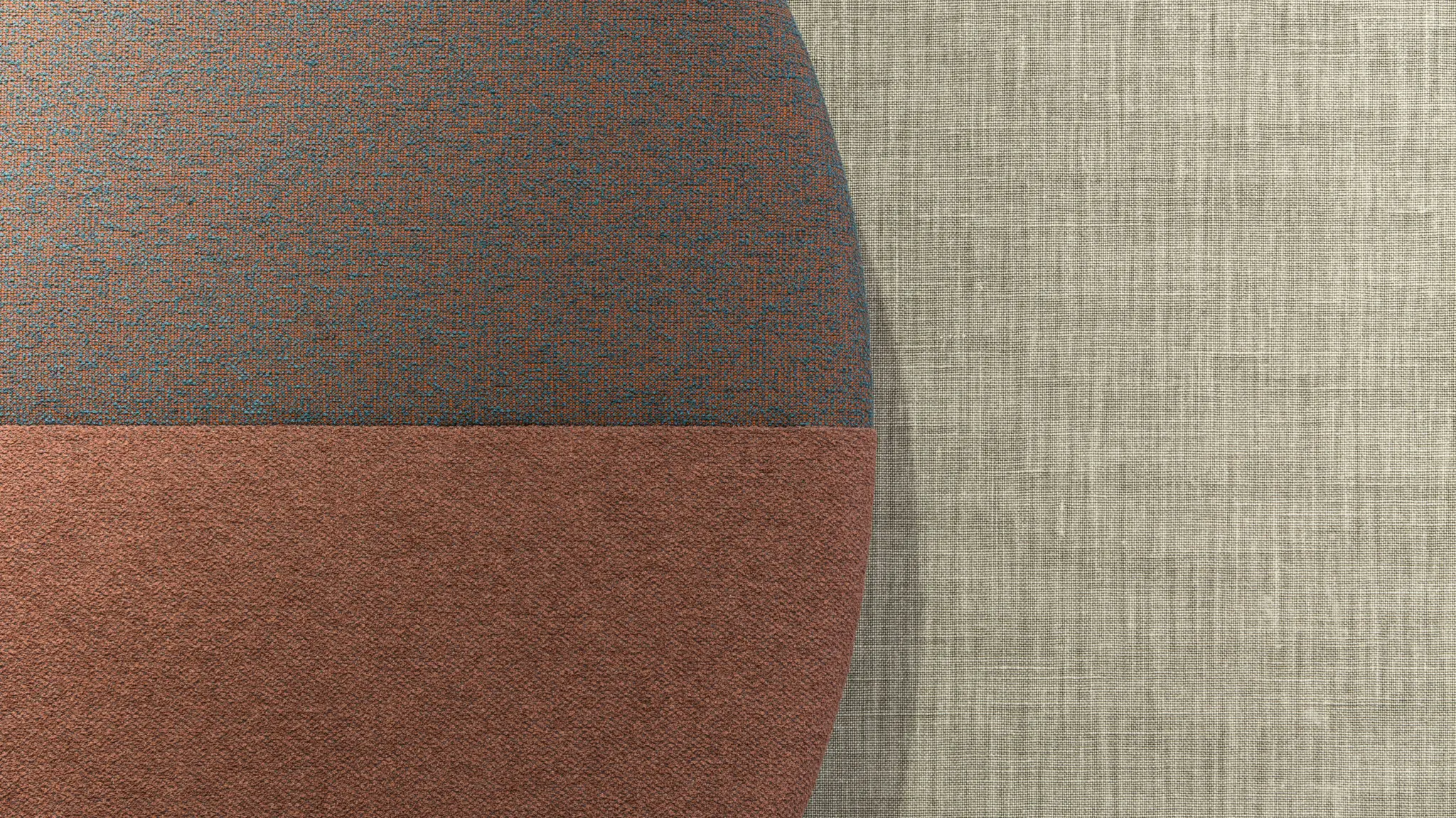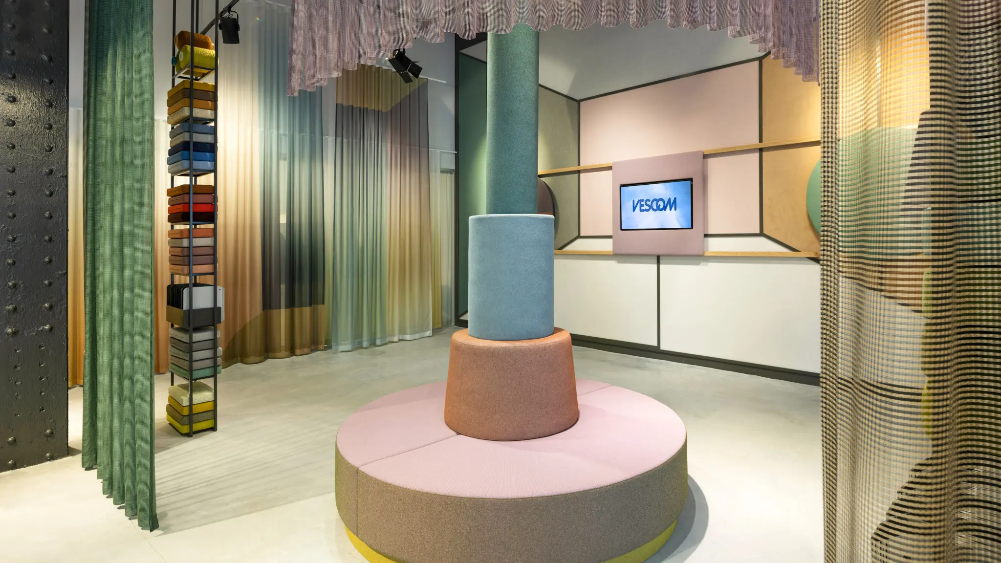 Bas van Tol’s interior design concept works entirely within the existing architecture, showcasing how to best apply Vescom’s innovative interior material solutions. The holistic world of Vescom is expressed through the wallcovering, furniture upholstery and curtains hanging in the space, with everything effortlessly coming together to form a cohesive material story through texture, colour and look and feel.