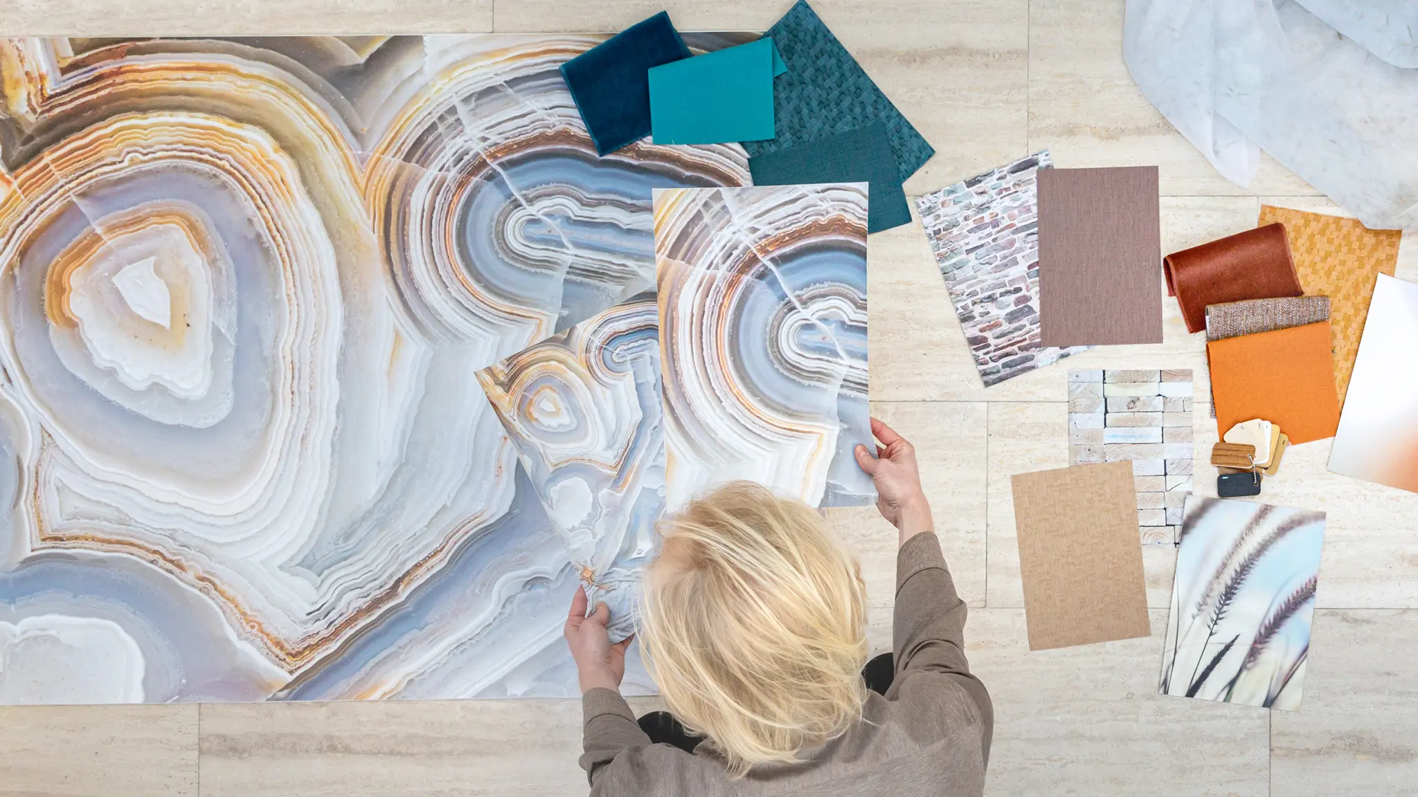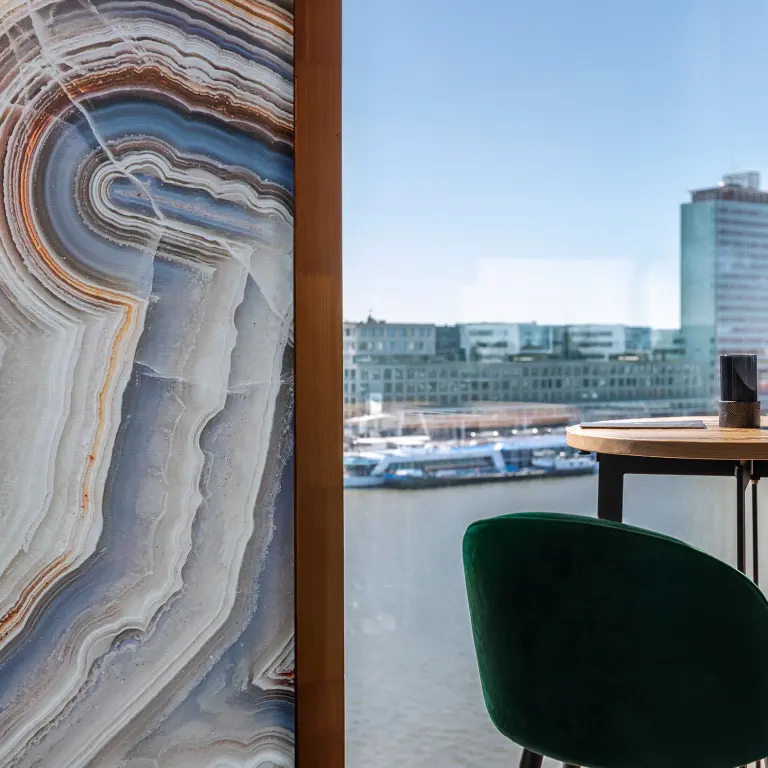 Popular bestsellers from Vescom’s standard wallcovering collection such as Melvin and Kilby can be customised through digital printing, giving architects and designers the advantage of combining personalised printed areas with non-printed wall sections – all with the same material.