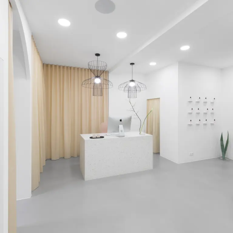 The room design of the recently opened studio comes from ka.ma design & interior architecture and reflects the holistic concept. The result is a place that provides an exclusive framework for the exchange of information and thoughts on all aspects of skin, health, beauty, nutrition and well-being. Vescom's transparent, acoustic curtain fabric Marmara is used as a privacy screen and for good acoustics.
