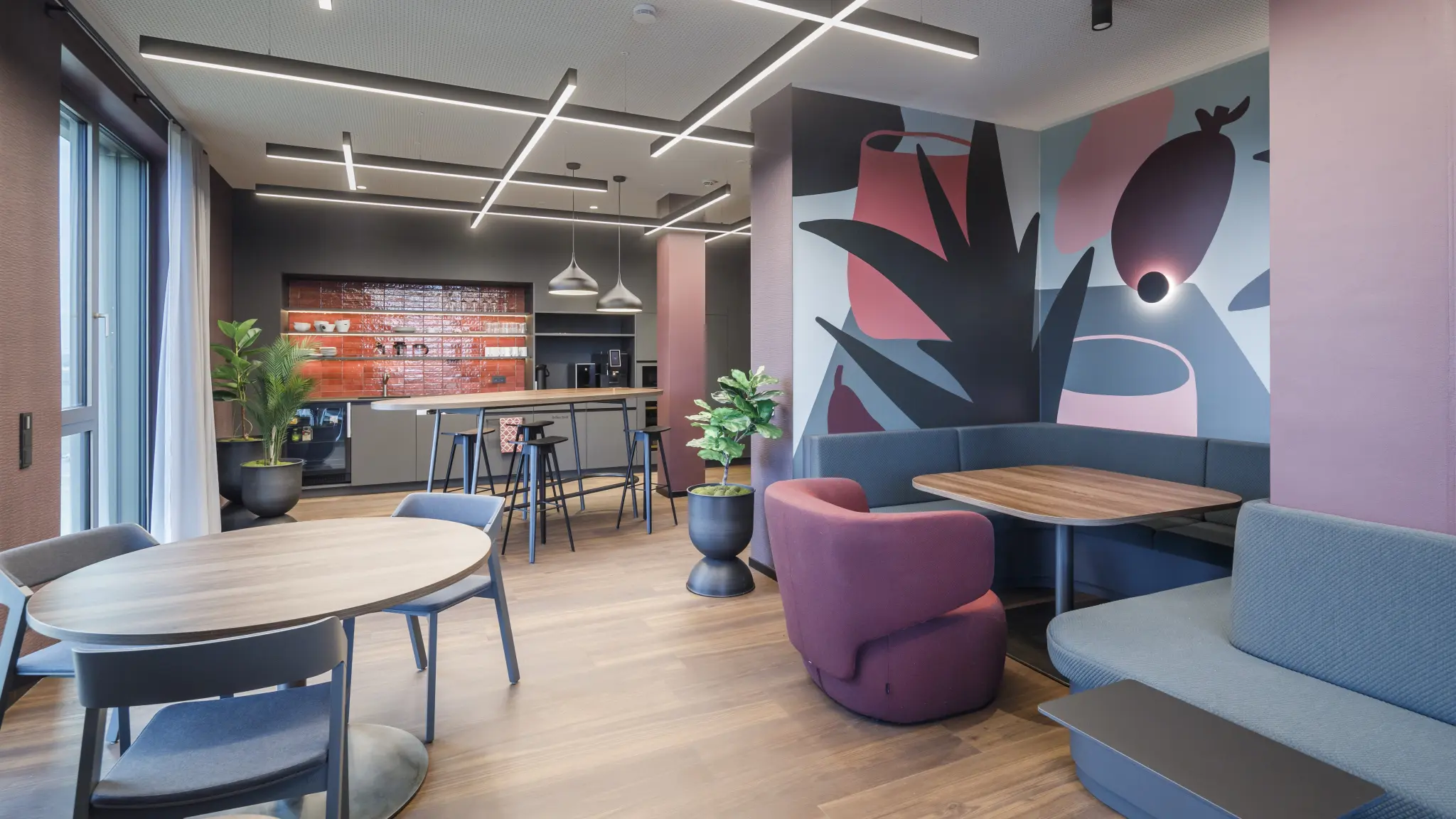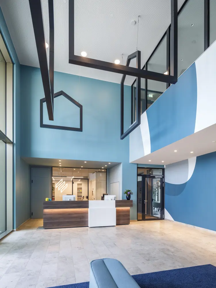 When designing the new head office for Deutsche Reihenhaus AG in Cologne, the focus was on employee satisfaction. On 4,000 square metres, distributed over four floors, 222 comfortable and spacious workplaces with a high feel-good component were created, embedded in an overall interior design concept with a high density of materials and colours. Each individual floor, the cafeteria and restaurant were given their very own mix of colours.