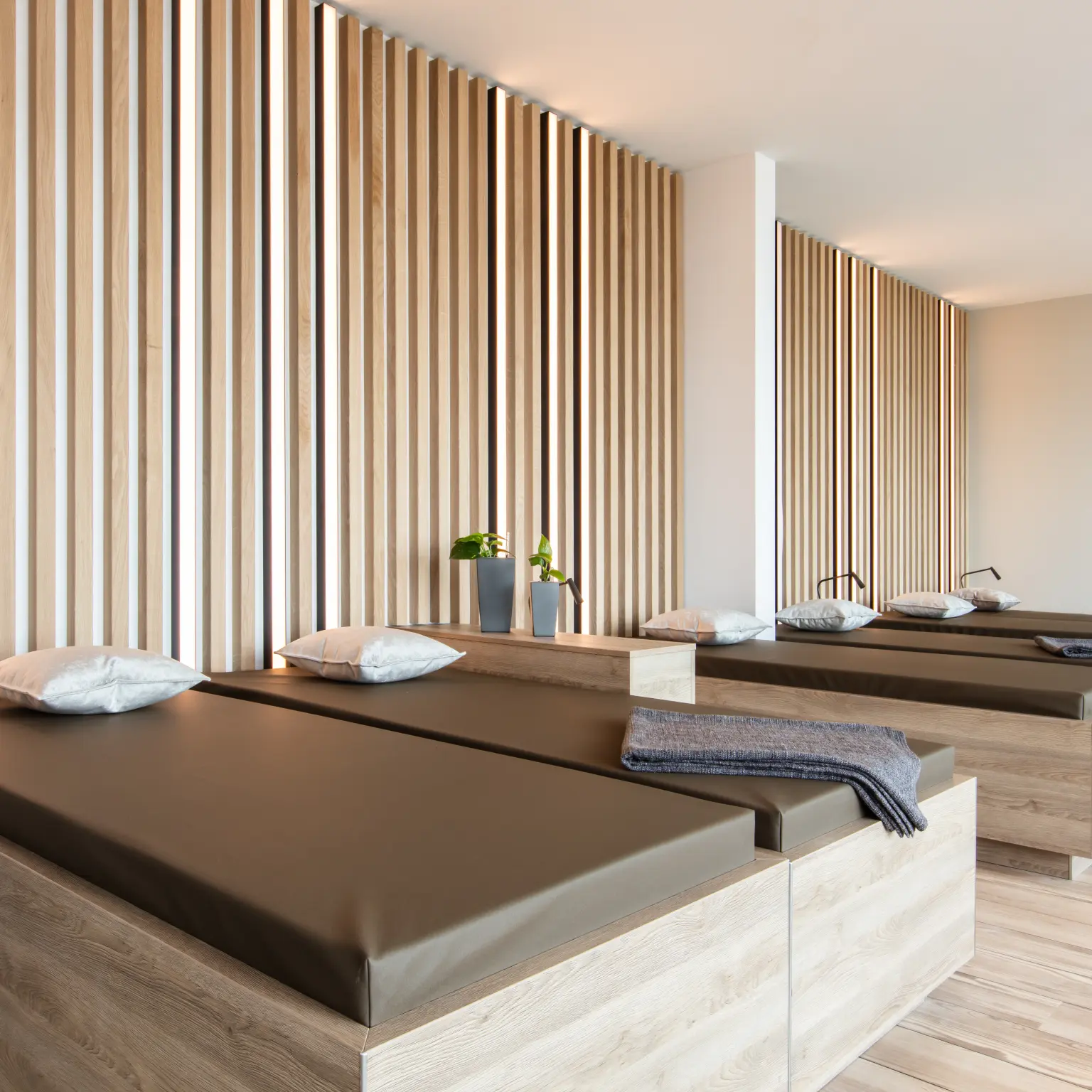 The architects also made no compromises to the colour concept. They asked Vescom to produce design Rainy in a special colour because the design concept envisaged a very specific, warm shade of gray for many of the wall surfaces. They chose design Ketoy in light gray for the extensive wellness and fitness area on the upper floor of the hotel. This vinyl wallcovering is known for its fine rib structure with a subtle sheen and has a luxurious textile look. Despite the light colour tone, it promises a flawless look in the long term, because it is exceptionally durable, very easy to care for and can even be disinfected if necessary.