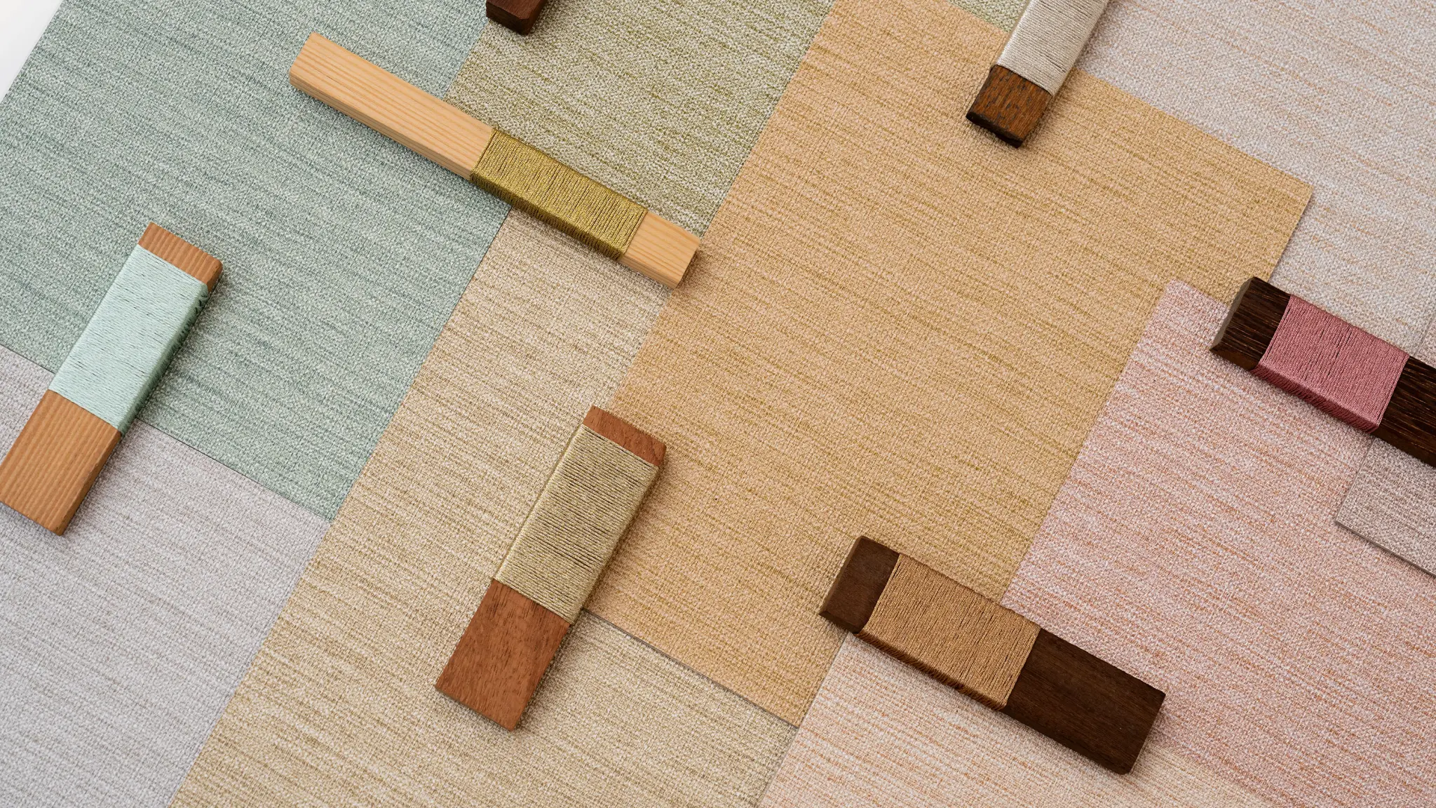Luxor’s palette blends traditional craftsmanship with contemporary elegance. Its 15 carefully curated colours complement its distinctive weave pattern, each enhanced by subtle metallic highlights that interact with light in ever-changing ways. The earthy tones, crisp hues and sophisticated neutrals – spanning from sandy browns to herbal greens to delicate lavender – evoke the essence of a sunlit meadow, bringing lightness and freshness to interiors.