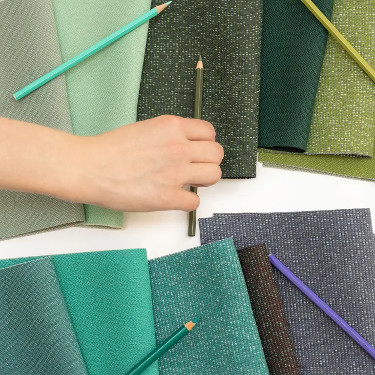 Colour Connect is the cornerstone of Vescom’s assortment of 100% post-consumer recycled content upholstery – the material solution that links everything together.