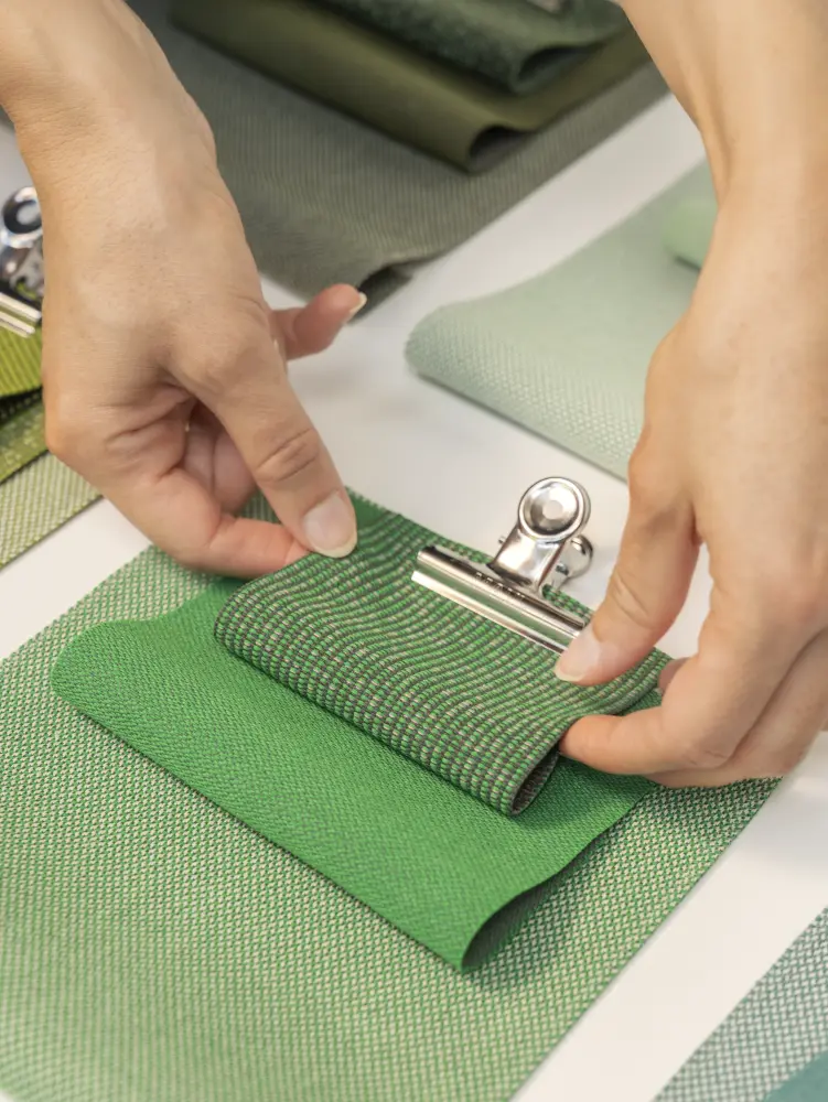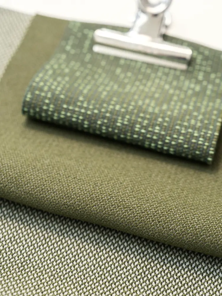 Developed in Vescom’s 100% owned factory to ensure complete control over the formula and process, Clint’s sustainable water- and stain-repellent finish is made from synthetic (polymer-based) wax and is free from PFAS and fluorocarbons. Clint upholstery fabric is made with 100% recycled content and is certified STANDARD 100 by OEKO-TEX®, meeting strict standards for environmental and human health.