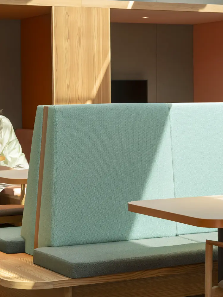 In spaces such as restaurants and workplaces, where spills are bound to happen, Clint – a 100% recycled polyester FR upholstery fabric – lets furniture embrace fresh, vibrant colours without compromise.