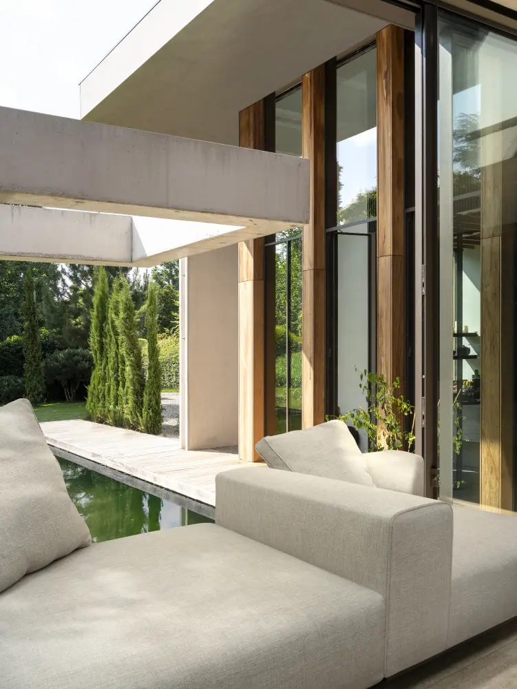 Vescom’s indoor-outdoor fabrics are designed precisely for these transitional spaces, where inside meets outside. Crafted for lasting beauty, they share a high colourfastness to light and weathering that’s inherent to the yarn itself. The result: textiles that retain their rich colours and tactility even in bright, exposed settings.