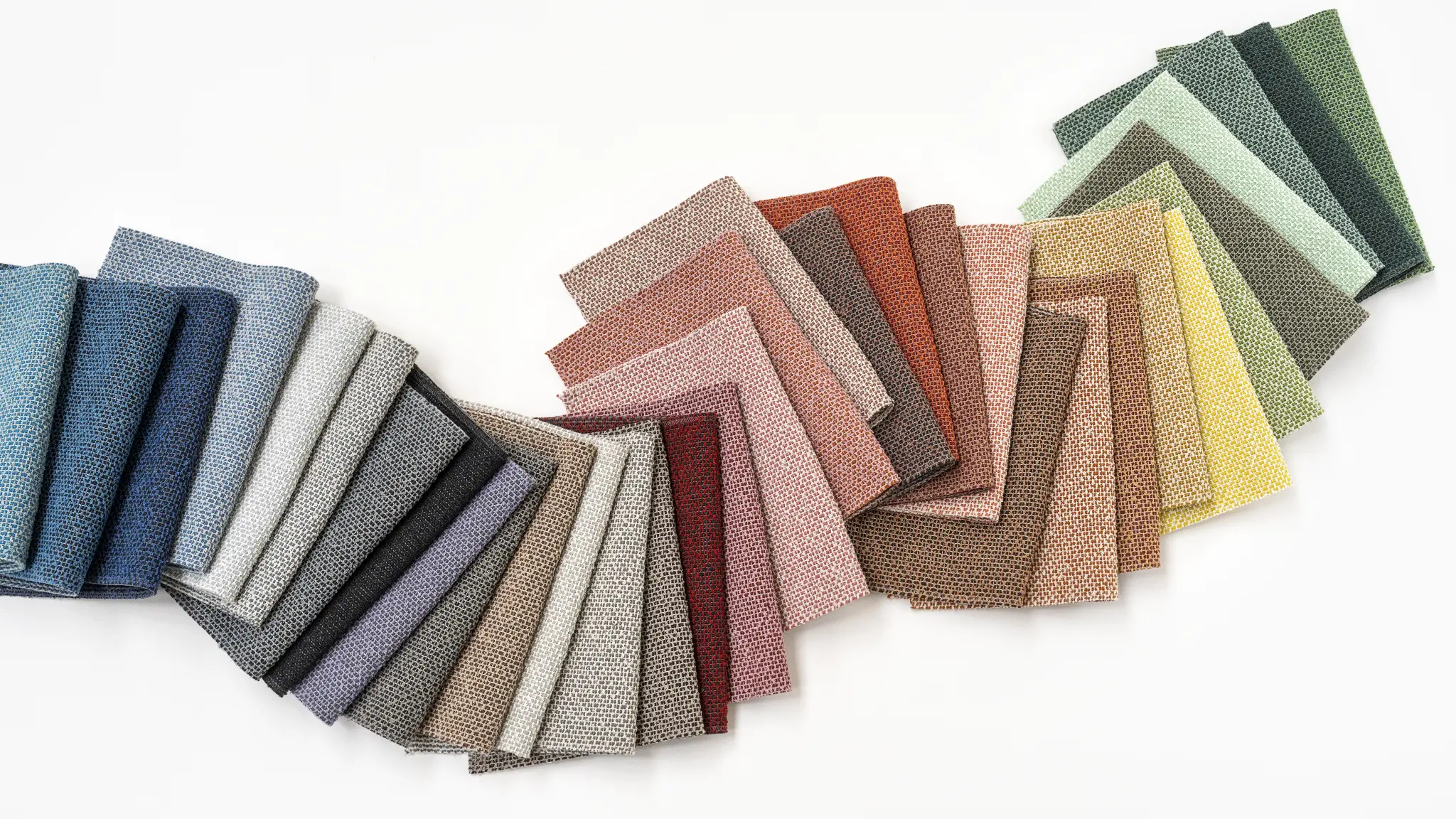 Upholstery fabric Coral comes in a wide-ranging palette of 34 colour combinations, arranged into natural colour groupings. These spectrums of compatible shades include grounding and calming earthy neutrals; mineral reds that echo coral reefs and sunbaked landscapes; retro-inspired tones that bring a contemporary twist to nostalgic shades; a gradation of ocean tones; and woodland greens that recall forest canopies and mossy undergrowth. Coral is yarn-dyed, which contributes to the uniqueness and diversity of the colour combinations.