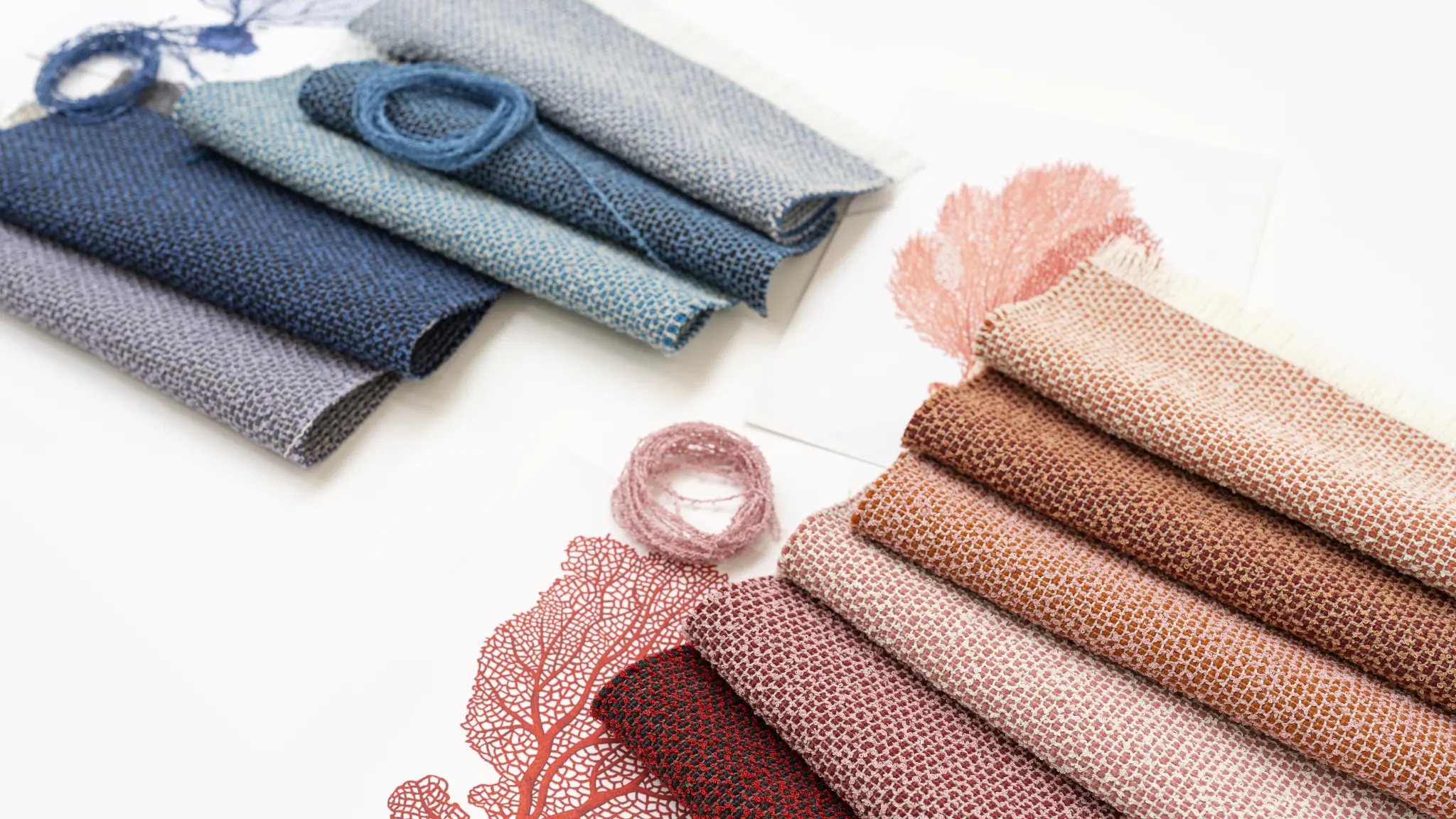 High-performance upholstery fabric Coral evokes the organic beauty of its namesake while incorporating 100% recycled content.