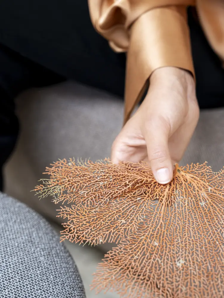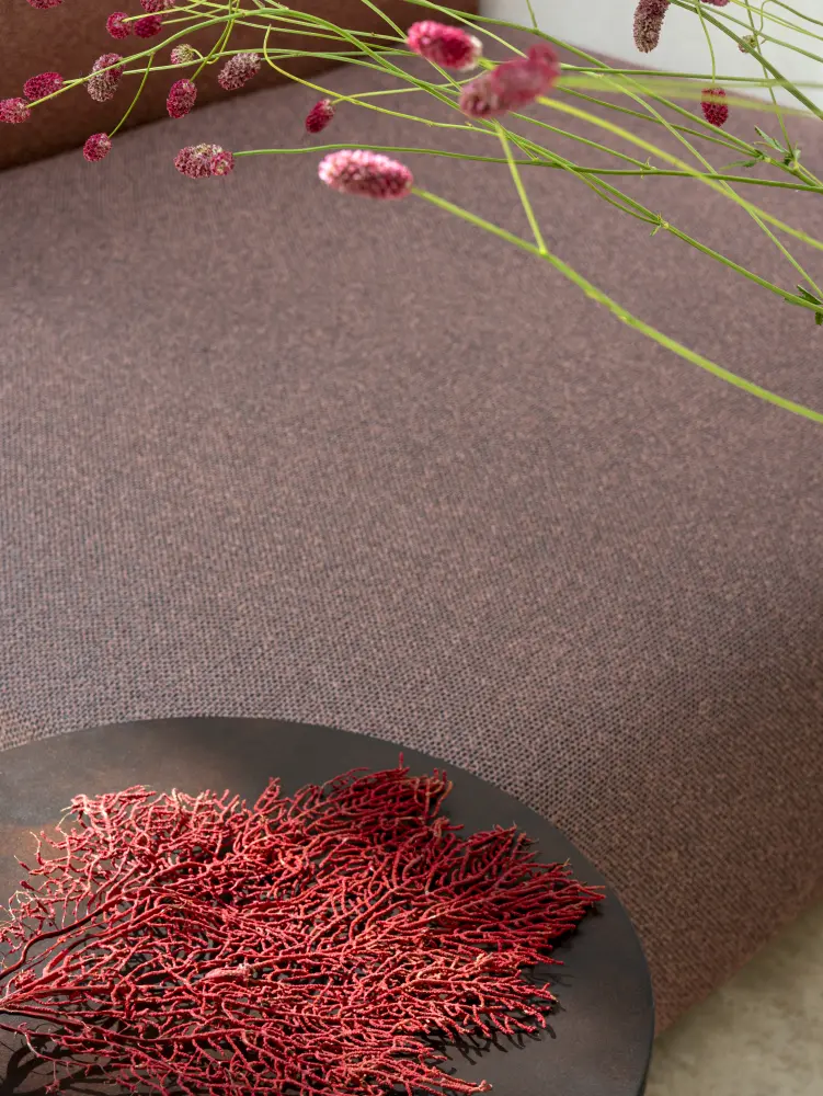 Coral reefs are like vibrant underwater tapestries, complex mosaics of colour and movement, and observing them is known to promote relaxation and mindfulness. Coral – a high-performance upholstery fabric made from 100% recycled content – draws inspiration from this natural wonder and its wellbeing benefits. It has a distinctive 3D texture and a small, irregular, non-directional grid that evoke the organic beauty of its namesake. Its textured surface is created by a grid of vivid bouclé yarn over a richly coloured base, giving the upholstery fabric depth and character.