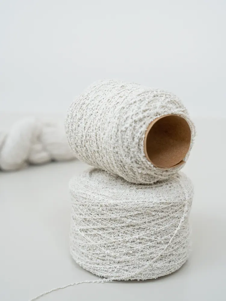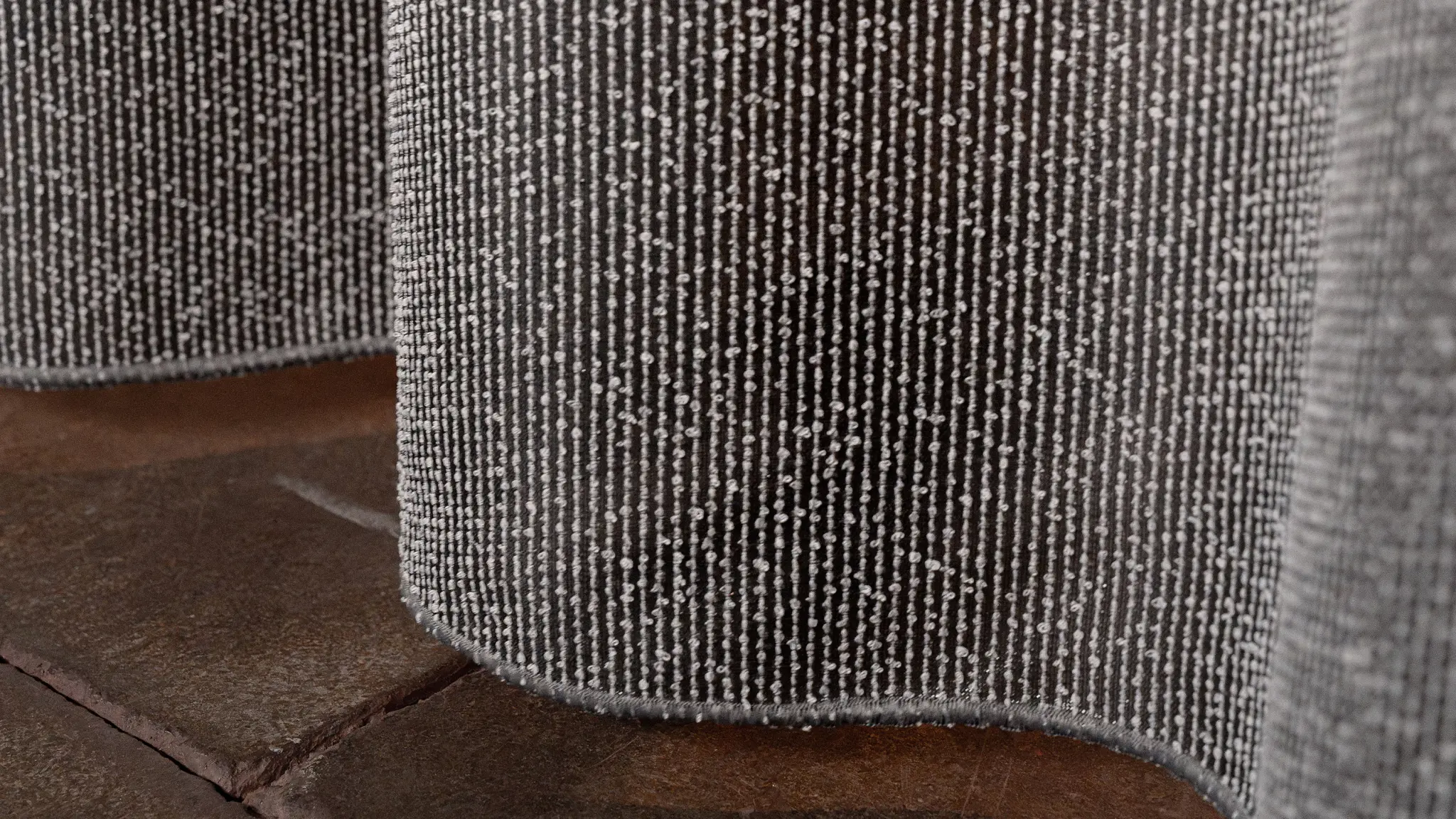 Semi-transparent curtain fabric Lucy takes this technology a step further. Not only does the acoustic sheer (alpha w 0.55) have a much softer look and feel, but it also demonstrates our commitment to continually increasing the amount of recycled content in our material solutions. The key is in the composition. Lucy contains 60% recycled polyester FR bouclé yarn, whose textured grain breaks up the sheen typically associated with acoustic sheers. With the matte look of natural materials, the bouclé yarn adds tactility and homelike comfort, while its distinctive structure creates depth and visual interest when the fabric interacts with light.