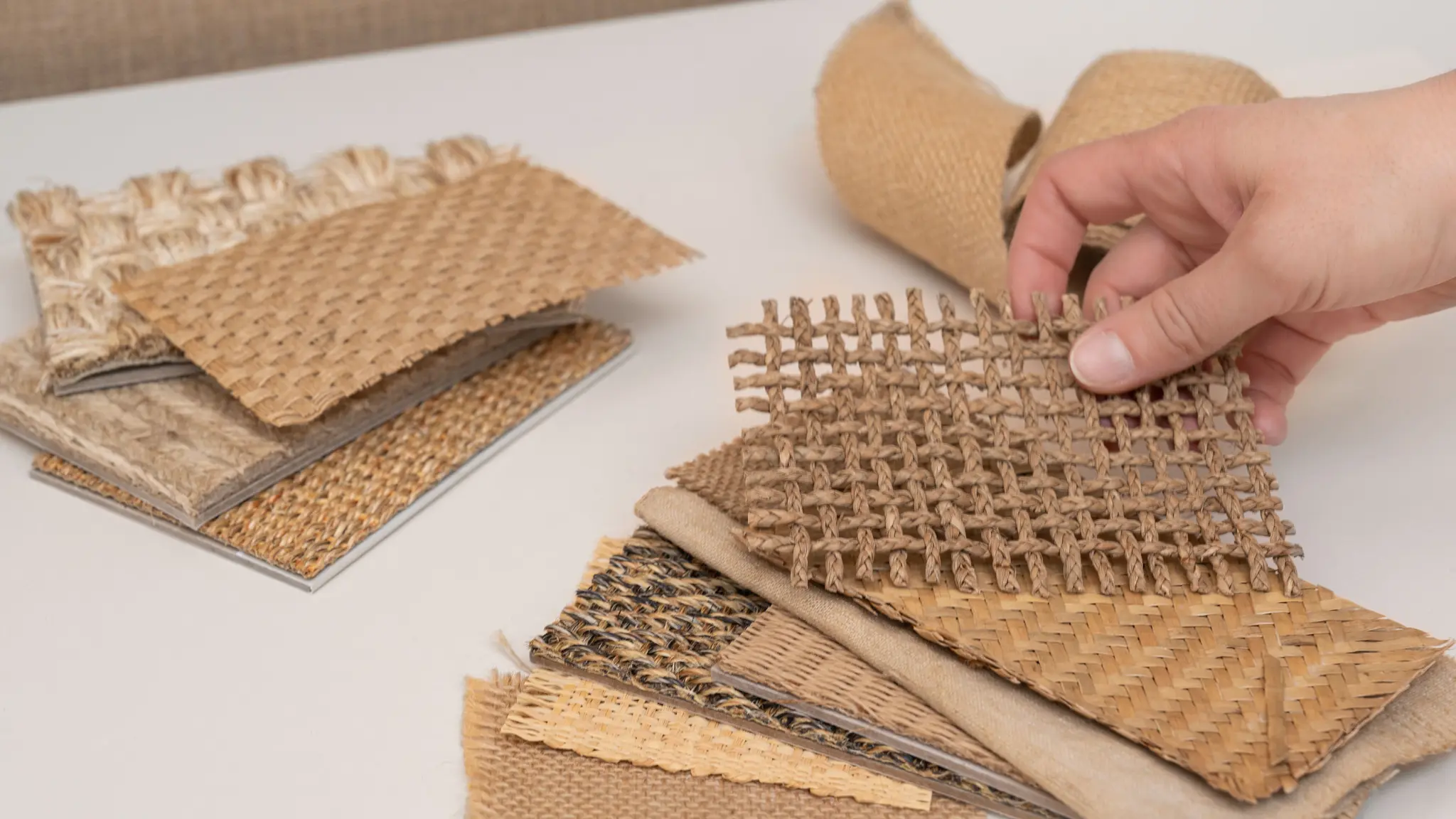 Lynn’s nine natural colourways include cool and warm shades, from crisp linen to soft hemp to dry bamboo. Each colour is made up of two tones, which give the material extra depth on interior walls.